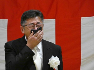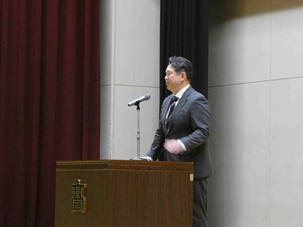 同窓会入会式では、第22期卒業生(野球部OB)である野村勇同窓会長から、新たに同窓会の仲間入りをする194名の卒業生へ歓迎の挨拶をいただきました。野村会長からは、同窓生が総計14,809名となったことへの紹介とともに、「商業高校の卒業生として、お金の流れを考えてほしい。ネット購入ではなく、ぜひ地元十勝・帯広でお金を使ってください。それが地域の雇用や税収を守ることにつながります」という、地域経済を支える社会人としての心構えについて力強いメッセージをいただきました。