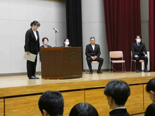 式辞では、千葉佳貴校長が「失敗を恐れずに挑戦すること」「1日1日を大切にすること」「仲間と支え合いながら成長すること」という3つの心がけを語りました。