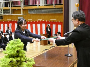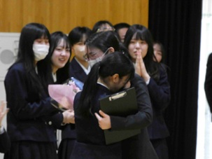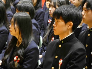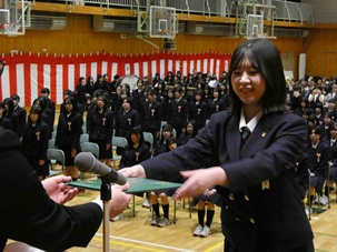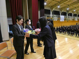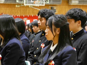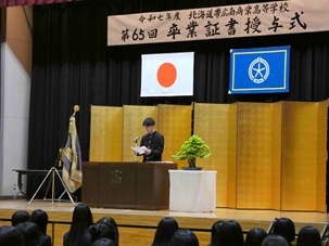 式の途中、進行の一部にちょっとしたミスがあった場面では、生徒たちから思わずくすっと笑いがこぼれながらも南商らしいあたたかく穏やかな雰囲気が感じられる一コマとなりました。