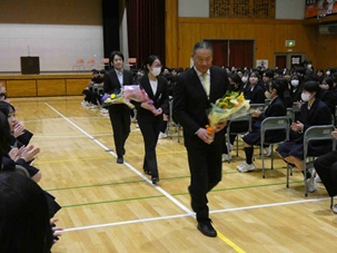 令和7年度の最後の登校日となった3月24日。終業式と離任式を体育館で行いました。今年度は6名の教職員が退職・異動となります。それぞれの道を歩まれる皆様のご健康と幸多き日々をお祈りいたします。