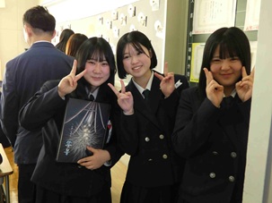 校長式辞では、南商での学びを通じて得た「自分で考える力」と「仲間を大切にする心」を、これからの人生の糧にしてほしいとの言葉が贈られました。また、在校生代表による送辞では、先輩たちが築き上げた伝統を受け継ぎ、「懐かしさと新しさ」を併せ持つ南商を創っていく決意が力強く述べられました。