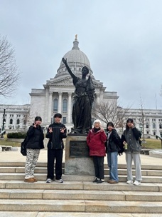 今日の午前中は,現地コーディネーターの方にウィスコンシン州会議事堂を案内してもらった一行。議事堂の歴史や施設について説明をしてもらい,普段なかなか入ることができない場所にも立ち寄ることができたようです。午後からは,語学学校で実践的な会話表現を多く習いました。せっかく覚えた表現も,日本であればなかなか使う機会はありませんが,ツアー参加生徒4名の目の前には絶好の機会が広がっています。ぜひ自分の言葉として使い,多くを習得してほしいものです。明日は現地の学校へ登校します。日本の高校との違いを感じる場面が多くあることでしょう。また,ある参加生徒からは,ホストファミリーと日本食を作ったという報告も届いています。好評だったものの,普段使っている食材で作ることができなかったようで,ぜひ日本で食べてもらいたいと感じたそうです。