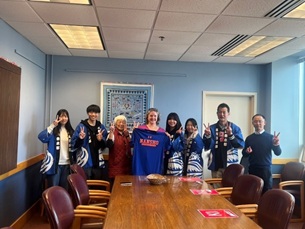だんだんと春を感じられるようになってきた帯広と異なり,現地マディソンは厳しい寒さが続いているようです。現地滞在日数も残りわずかとなってきました。ツアー参加生徒たちは,今日も現地学校へ登校しています。地元のバスに乗って登校した生徒からは,日本のバスのようにアナウンス等がないことに驚いたという声が聞こえてきました。今日も授業を理解することには苦戦したようですが,その場で雰囲気を感じられていること,少しでも理解できることが増していることに喜びも感じられているようです。下校後は,全員でマディソン市長を訪問させていただきました。とても気さくに接してくださり,披露した「上を向いて歩こう」はご存じだったようで,喜んでいただけたようです。