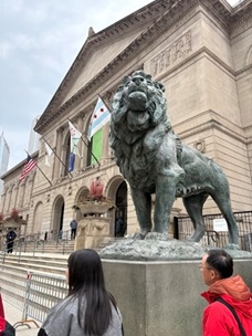 The tour members had a few days to go to a local school there, but they could get precious chances which they could feel the differences between Japanese schools and ones in America. After school, they went to an arcade. They enjoyed games which they have never seen before in Japan. They finished studying in Madison and they went to Chicago with their coordinator. First, they went to The Art Institute of Chicago. They didn’t know much about art before going there, but they could enjoy it. On that day, a St. Patrick’s Day parade was held. People there wore green and even the river was dyed green. They could feel the difference in atmosphere from Madison, and also they enjoyed Chicago pizza. They could enjoy a new style of pizza with a unique shape.