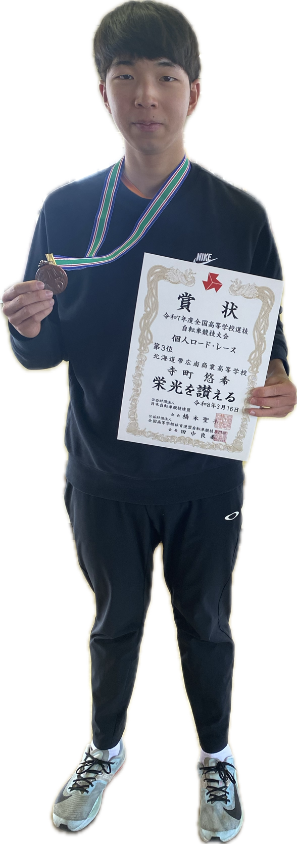 令和7年3月16日、「令和7年度 全国高等学校選抜自転車競技大会」のロードレース競技が開催されました。全国から強豪選手が集い、手に汗握る激戦が繰り広げられる中、本校の寺町悠希選手が見事な走りを見せ、第3位・銅メダルを獲得いたしました!