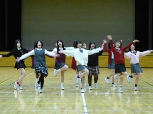 本日は、アルゼンチンからの留学生アビー・カレーニョさんの最後の登校日。そして、3年生が家庭学習期間前、最後の登校日でした。留学生を送る会でアビーさんは、この1年間で習得した日本語で、友だちや先生方への感謝と楽しかった南商生活について話してくれました。その後に行われた3年生を送る会では、バトントワラー部の一員としての演技披露と有志発表でダンスを披露し、素敵な笑顔を見せてくれました。