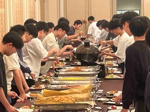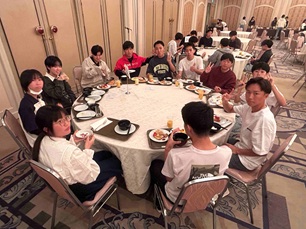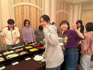 レクリエーションの後は、全員で焼肉を楽しみました。生徒たちは思い思いの食材を持ち寄り、和気あいあいとした雰囲気の中で食事を楽しんでいました。