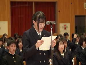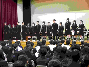 終盤には、新入生代表が「卒業までに社会の役に立つ人になるよう努力します」と宣誓しました。