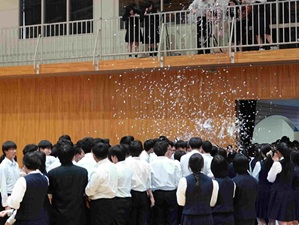 退場の際には吹奏楽部の演奏や拍手だけでなく、花道や紙吹雪で盛大に新入生・留学生・着任された先生方が退場しました。