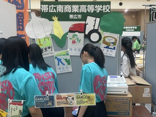 本校は購買局が参加し、十勝清水町にんにくガーリッチ、サクッとミルク、更別どんむりのむらポテトチップス、帯広大正じゃがバター、音更ブロッコリーら~麺、芽室コーンおかき、自校開発商品の帯広動物園ZOOマグネットを販売しました。