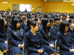 式の途中、進行の一部にちょっとしたミスがあった場面では、生徒たちから思わずくすっと笑いがこぼれながらも南商らしいあたたかく穏やかな雰囲気が感じられる一コマとなりました。