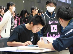 中学生一日体験入学を実施し、管内・管外より約600名の中学生・保護者のみなさまの参加がありました。南商生が各HR担当や授業担当となり、中学生のサポートをしながら緊張感を和らげていました。生徒会による体育館での全体説明から始まり、商業科目の体験授業を受け、昼休みは多くの中学生がスタンプラリーで校舎内を走り回りました。また、保護者の方々には校舎内や授業風景を見学していただきました。